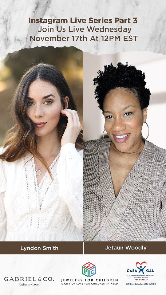 SEATTLE, Washington–Gabriel & Co., the leader in bridal and fashion fine jewelry, will host part three of their “Stronger with Lyndon” Instagram live series in partnership with actress and influencer Lyndon Smith featuring National CASA/GAL Association for Children director, network marketing communications Jetaun Woodly at 12 p.m. ET, Wednesday, November 17.
